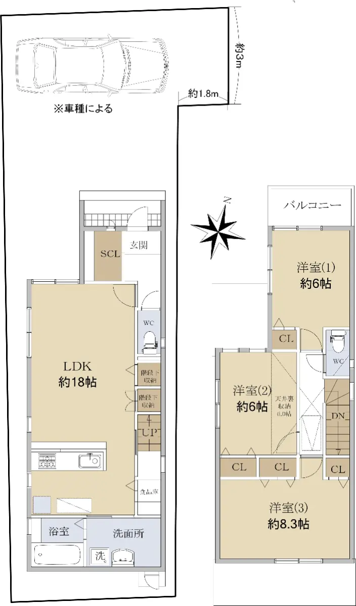 | 接道状況 | 一方道路・東6m(私道)接面3m |