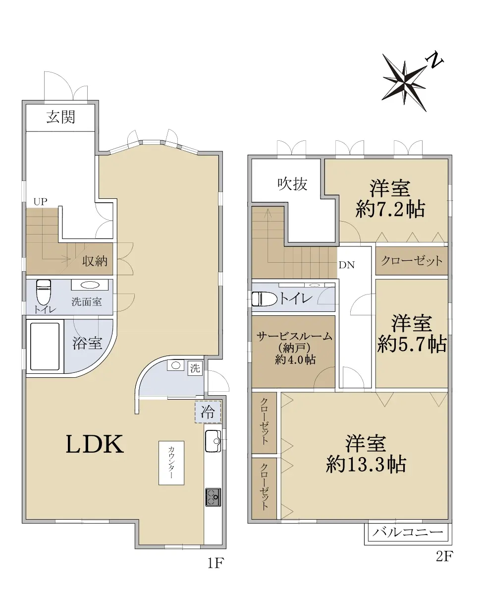 | 間取り | 3SLDK ※Sはサービスルーム(納戸) |