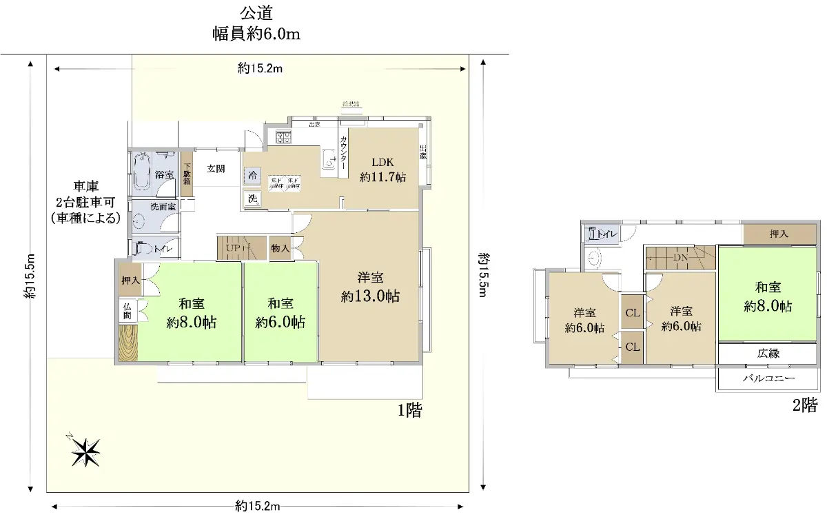 ■車2台駐車可能(車種による)