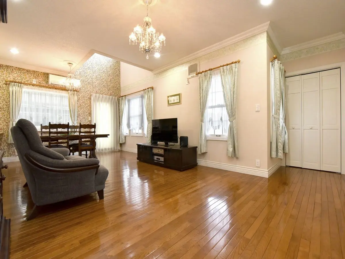 南西向きのリビングダイニングには吹き抜けがあり、自然光がたっぷり入る洋風建築が魅力の一つです。