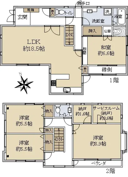 | 間取り | 4SLDK ※Sはサービスルーム(納戸) |