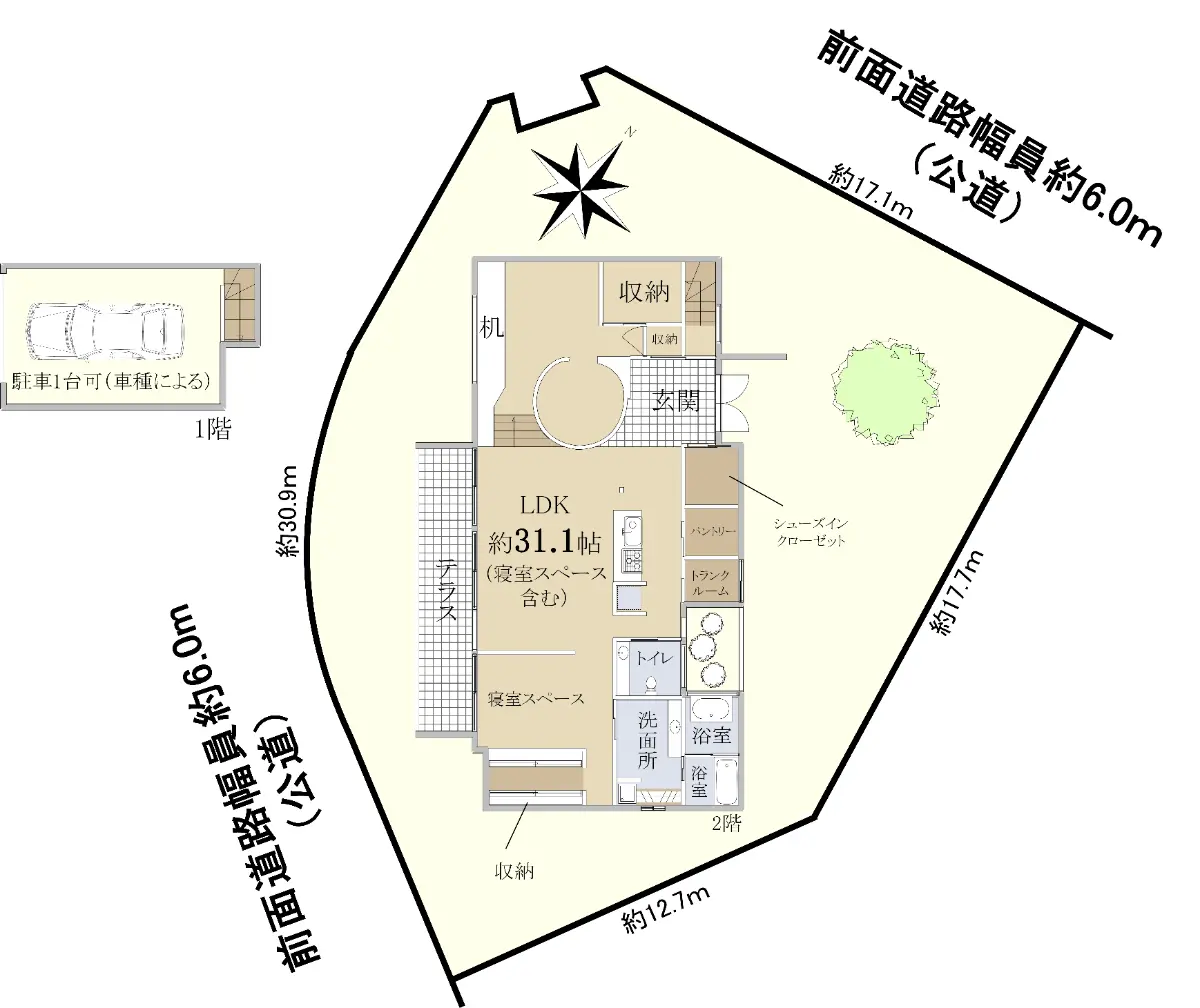 | 接道状況 | 角地・北6m(公道)接面17.1m/西6m(公道)接面30.9m |