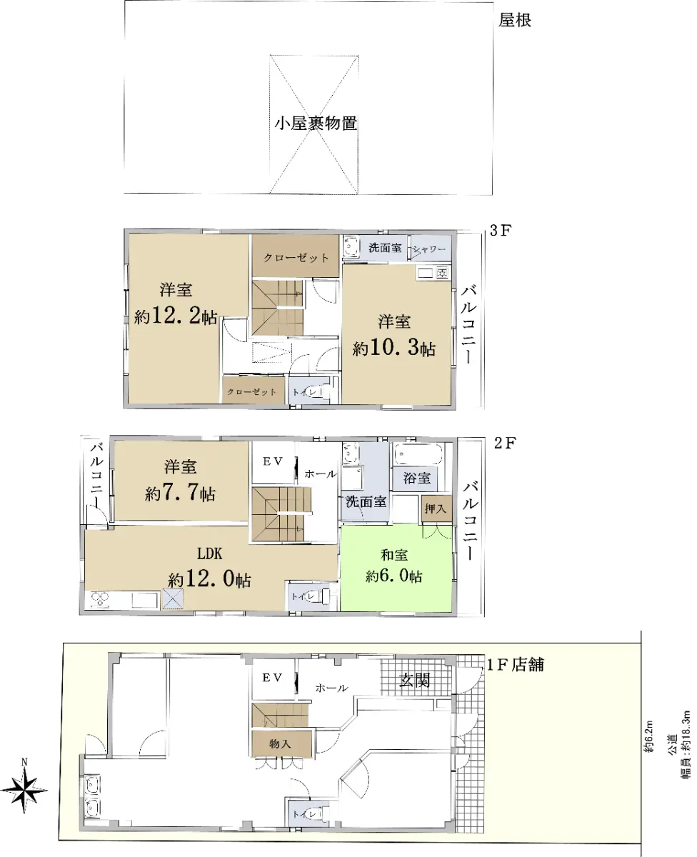 | 接道状況 | 一方道路・東18.3m(公道)接面6.2m |