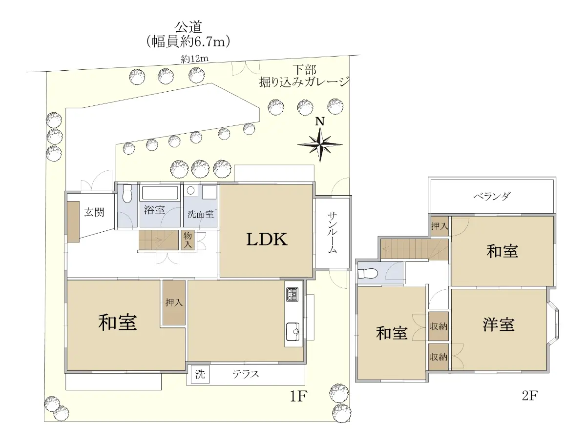 | 接道状況 | 一方道路・北6.7m(公道)接面12m |