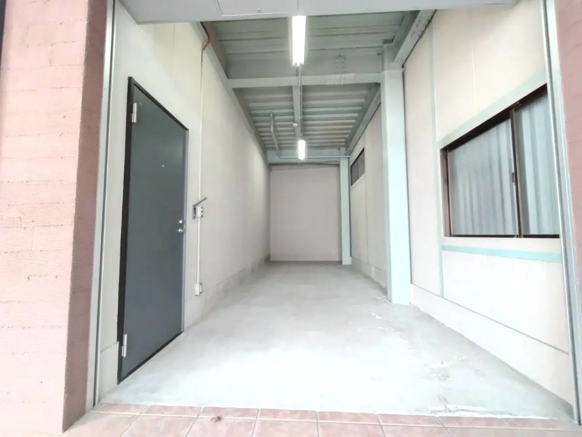 カーポート、倉庫は電動シャッターで