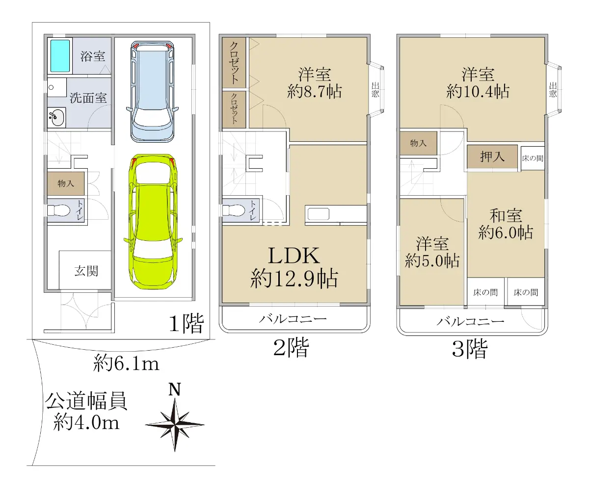 | 接道状況 | 一方道路・南4m(公道)接面6.1m |