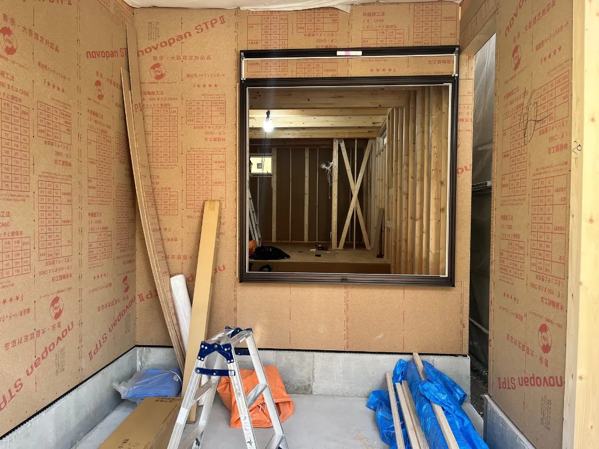 木造2階建の新築戸建、1階LDKは、21.2帖あります。2026年4月下旬完成予定