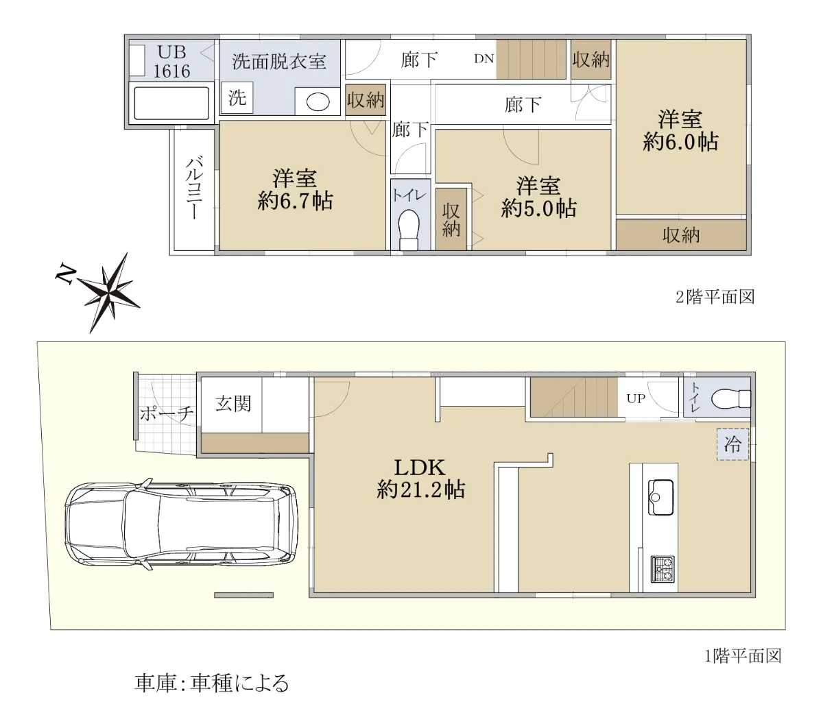 ■1階LDKは約21.2帖 2階洋室約6.0帖・約6.7帖・約5.0帖・トイレ2か所