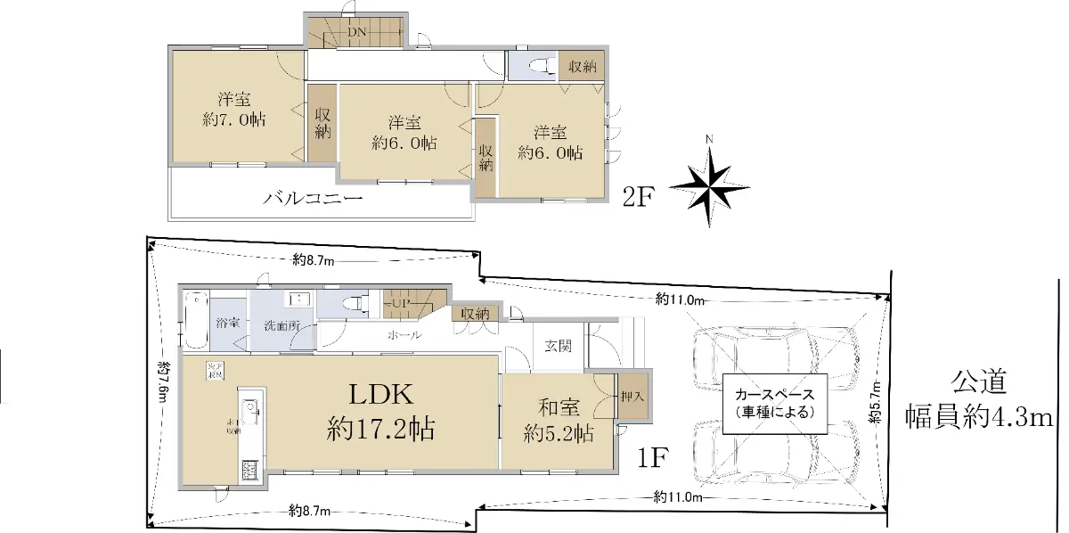 | 接道状況 | 一方道路・東4.3m(公道)接面5.7m |