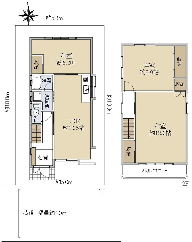 | 接道状況 | 一方道路・南4m(私道)接面5m |