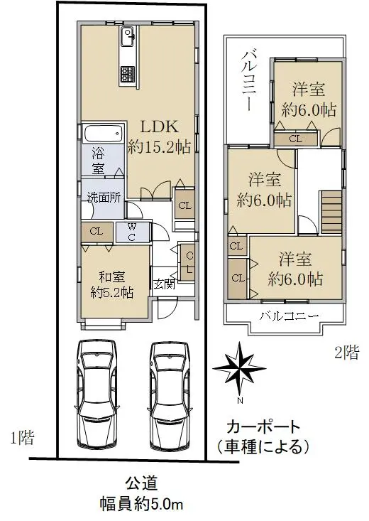 カーポートは2台駐車可能(車種による)です。