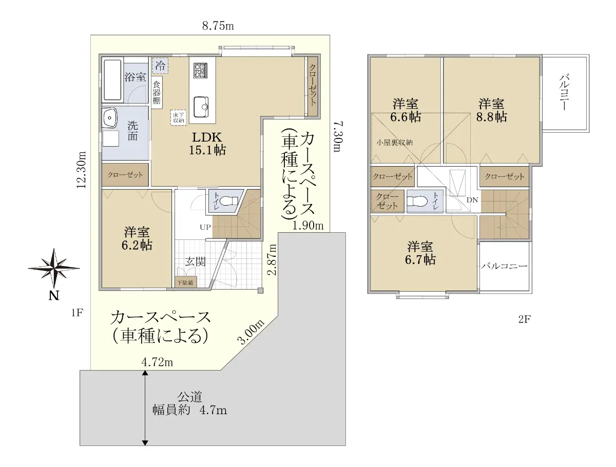 前面道路幅員は約4.7mあり、カースペース(車種による)もございます。