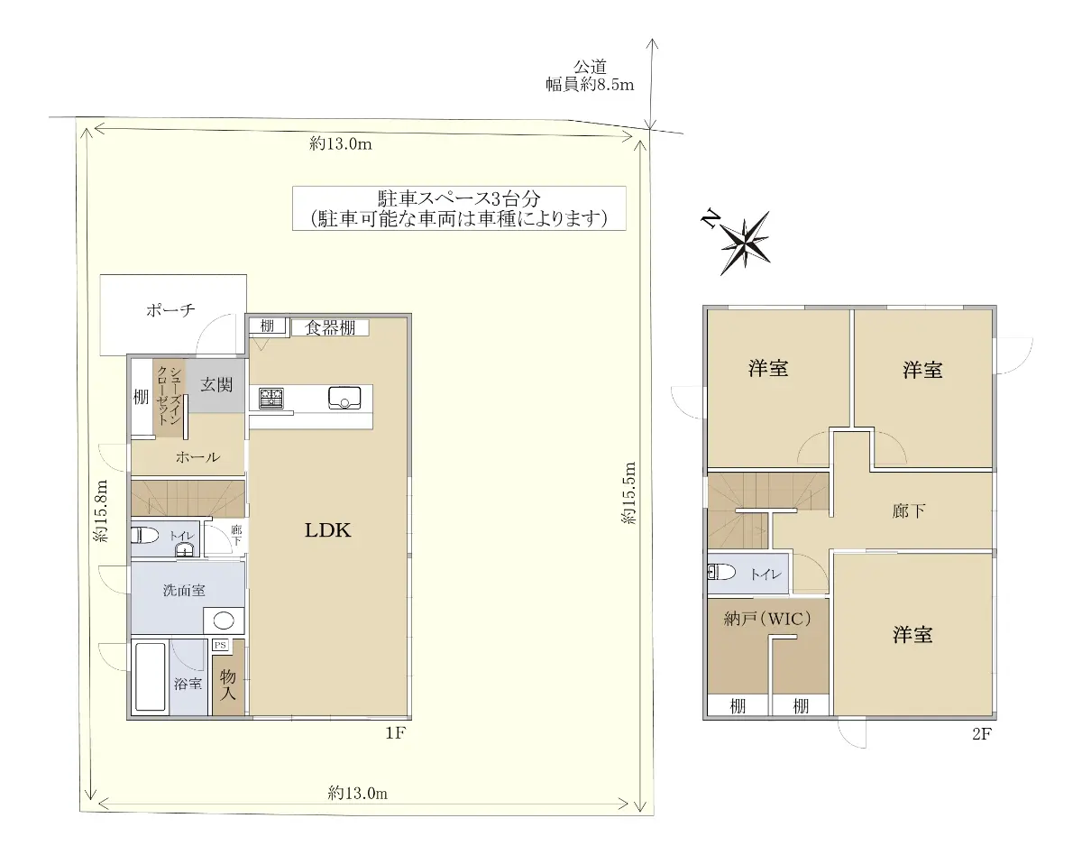 | 接道状況 | 一方道路・北東8.5m(公道)接面13m |