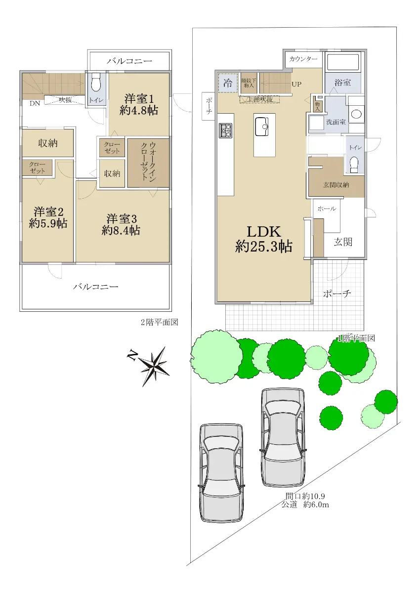 | 接道状況 | 一方道路・南西6m(公道)接面10.9m |