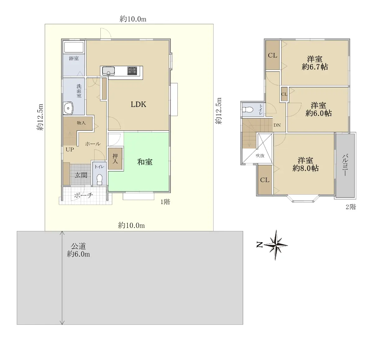 | 接道状況 | 一方道路・西6m(公道)接面10m |
