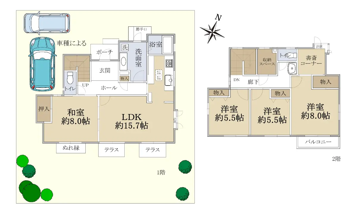 ・駐車2台可(車種による)