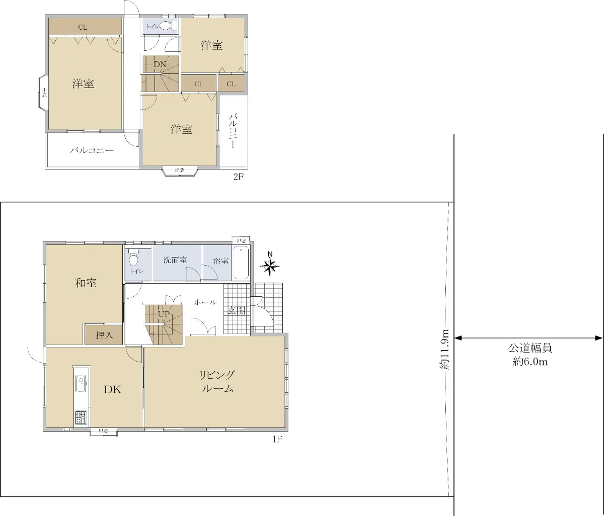 | 接道状況 | 一方道路・東6m(公道)接面11.9m |