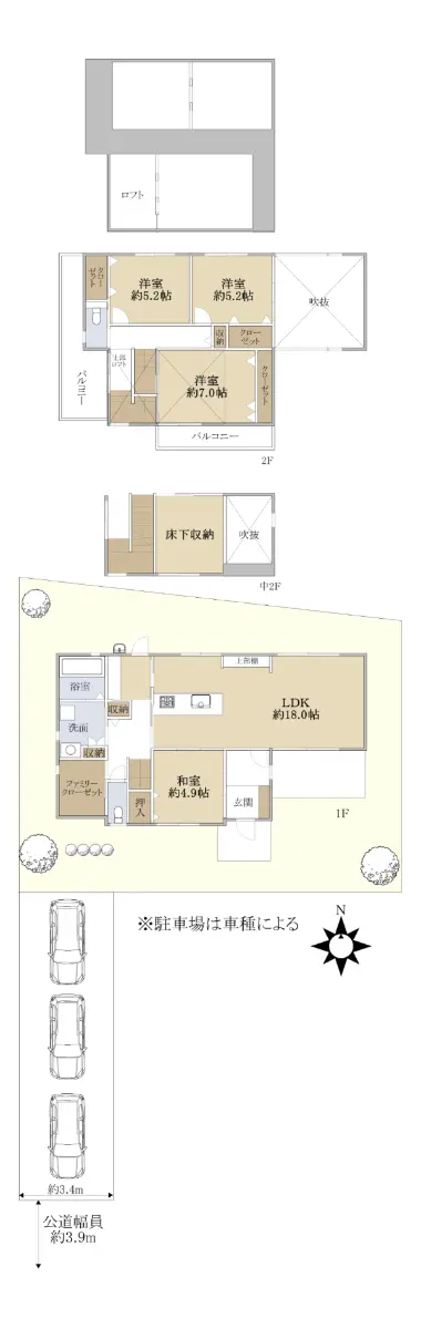 ・駐車3台可能(車種による)通路も確保