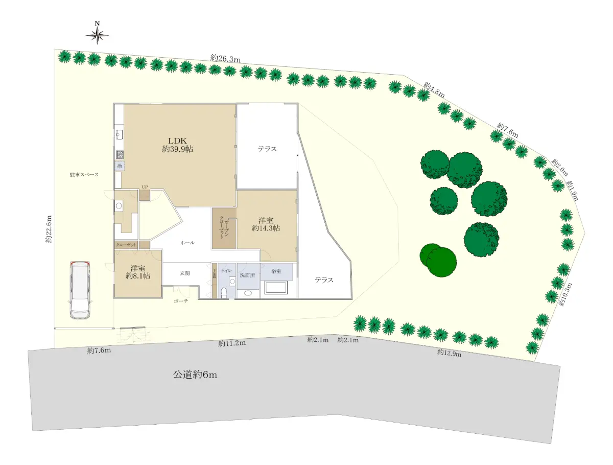 | 接道状況 | 一方道路・南6m(公道)接面35.9m |