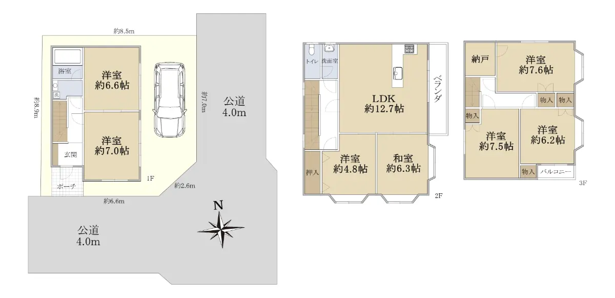 | 接道状況 | 角地・東4m(公道)接面7m/南4m(公道)接面6.6m |