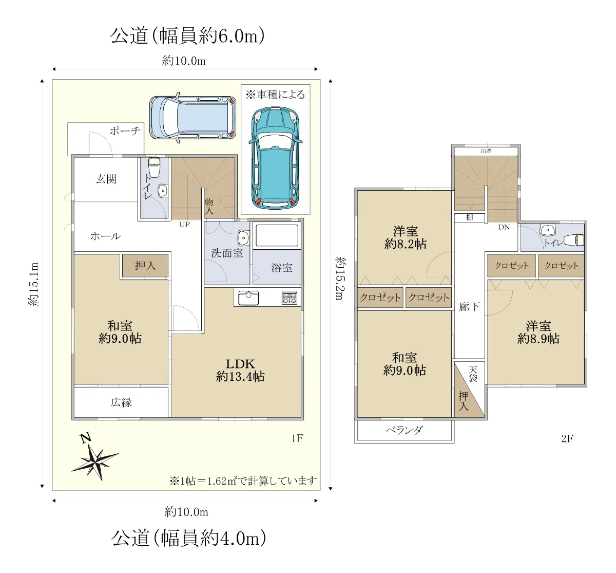 ☆土地46.09坪 ☆南北両面道路 ☆間口約10.0m ☆駐車2台可(車種による)