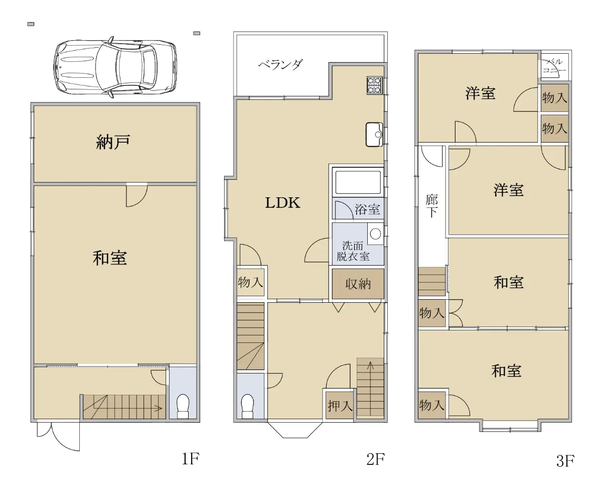 5SLDKで駐車場1台(車種による)と使い勝手の良い間取りとなっております。