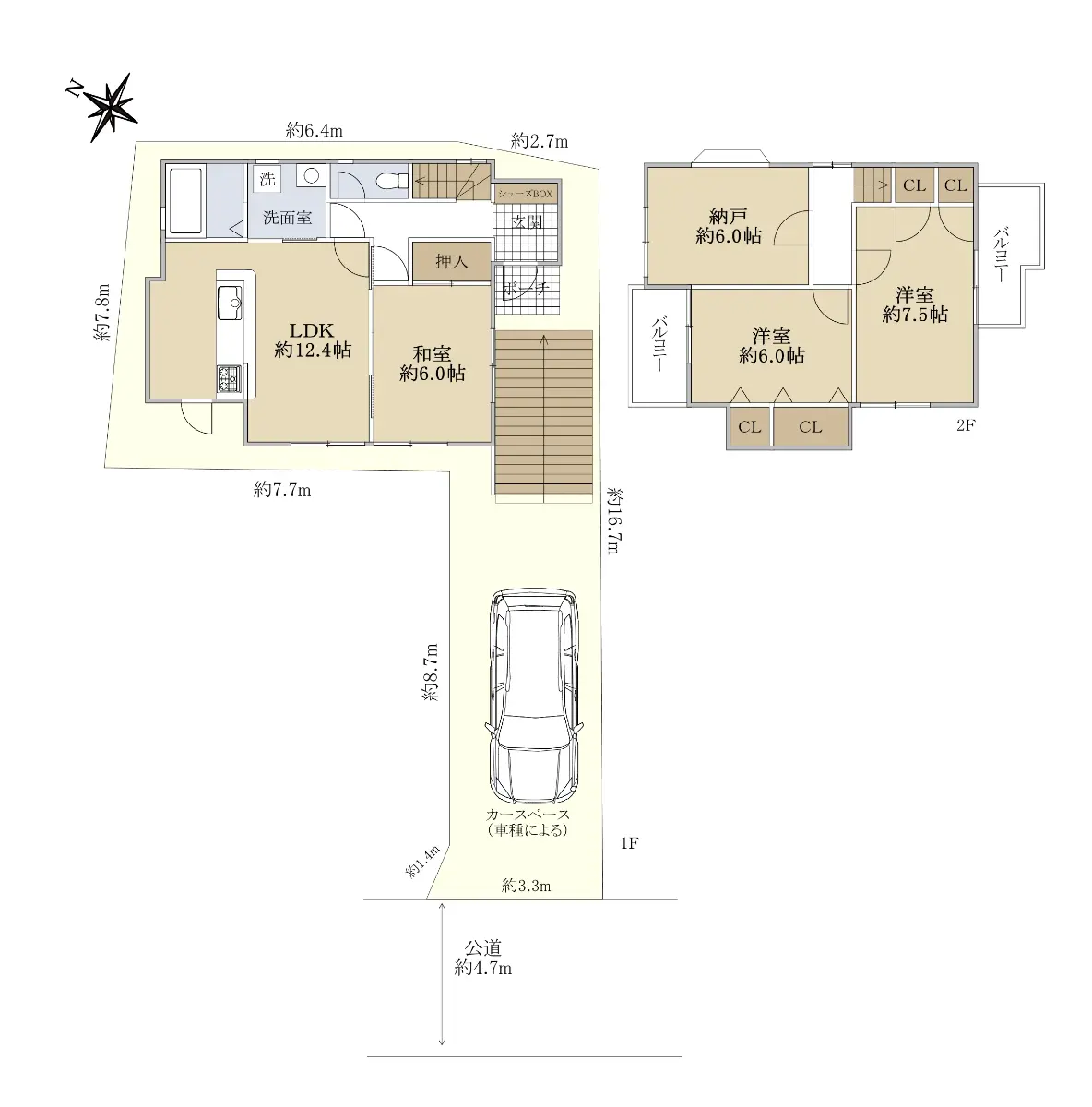 | 接道状況 | 一方道路・南西4.7m(公道)接面3.3m |