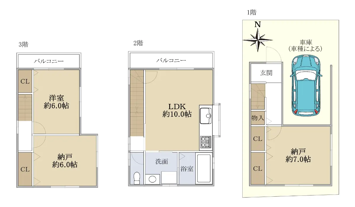 ・駐車1台可(車種による)
