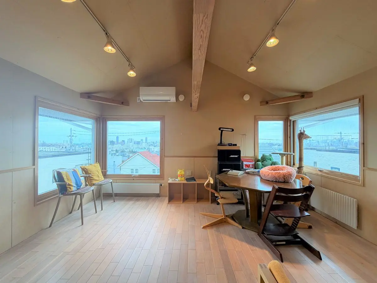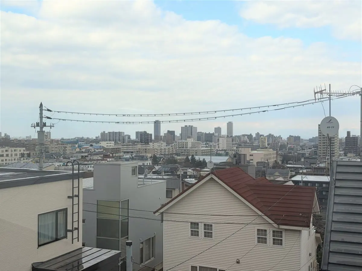 ◎高所に建つため、2階からの眺望良好な物件です。2階のフリースペースから札幌市街地を望めます。
