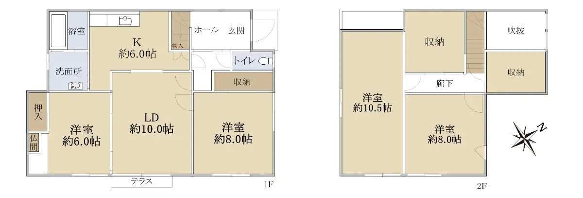 1階に洋室2部屋、水回りがございますので、使い勝手の良い間取りになっています。