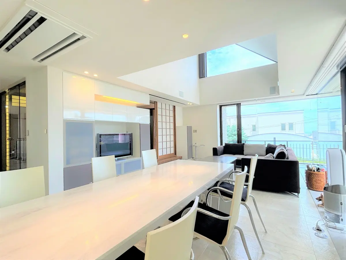 LDK壁、天井は珪藻コダンコート仕上げとなっており、LDK、浴室、洗面はホモジニアスタイルの床タイル施工で、リビングにはビルトインエアコン(2024年5月交換)やB&Wの音響スピーカー、ホームシアター設備も御座います。
