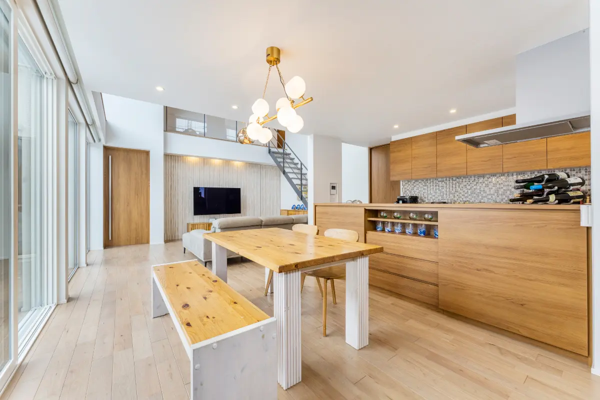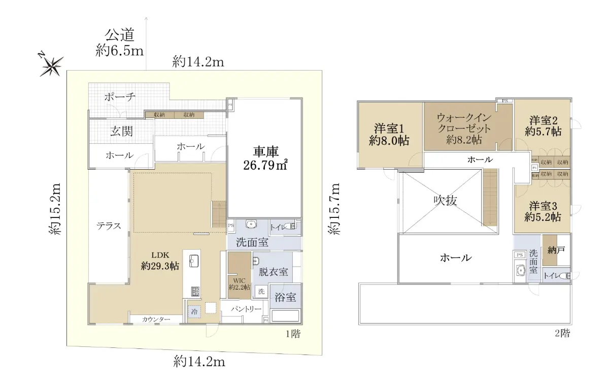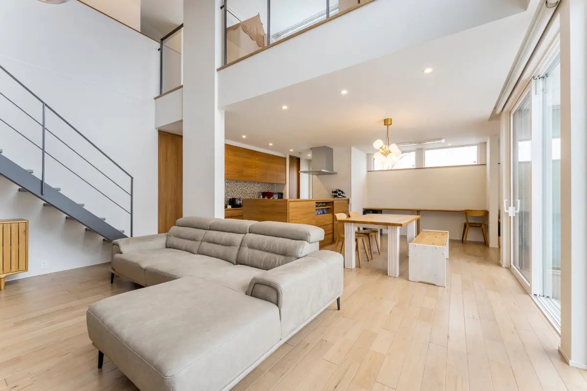 吹き抜けありのLDK部分は約29.3帖の広さがあり、開放感のある空間となっております。