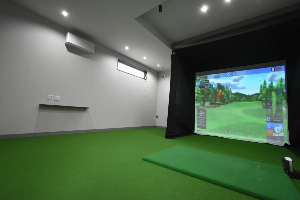 ■ 玄関ホールからつながるガレージは、人工芝設置でゴルフシミュレーターがあります!