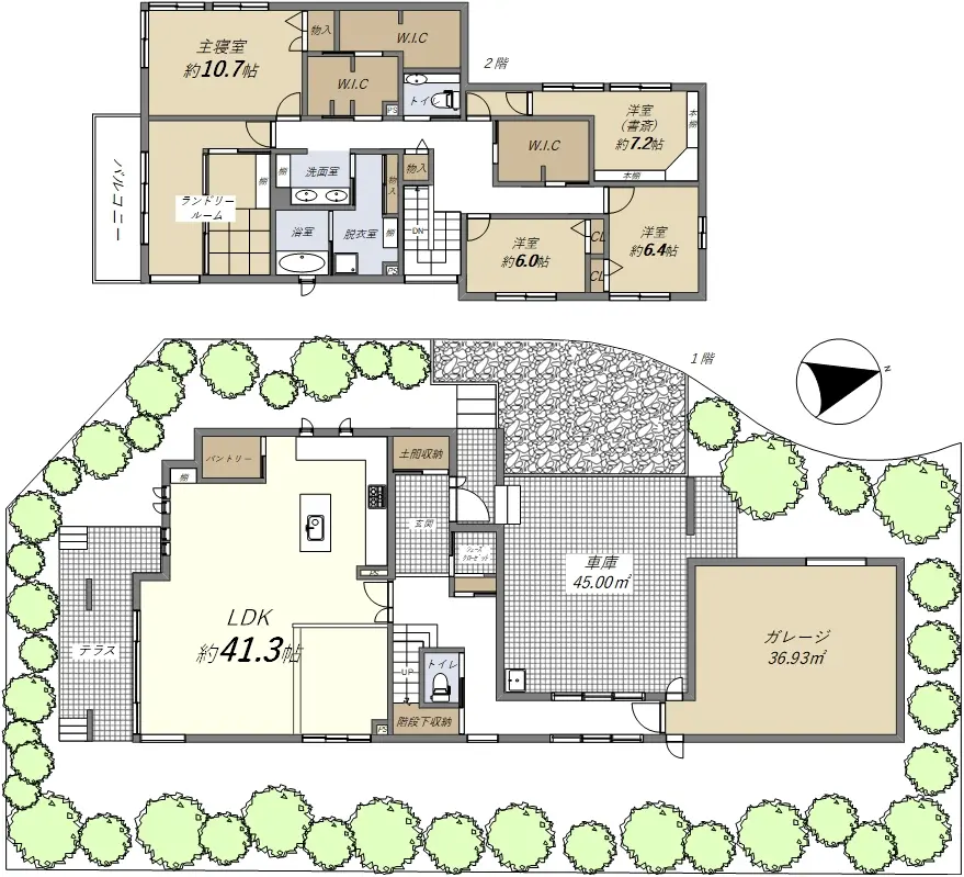 ■ 防音仕様の書斎(約7.2帖)や、ランドリールームあり