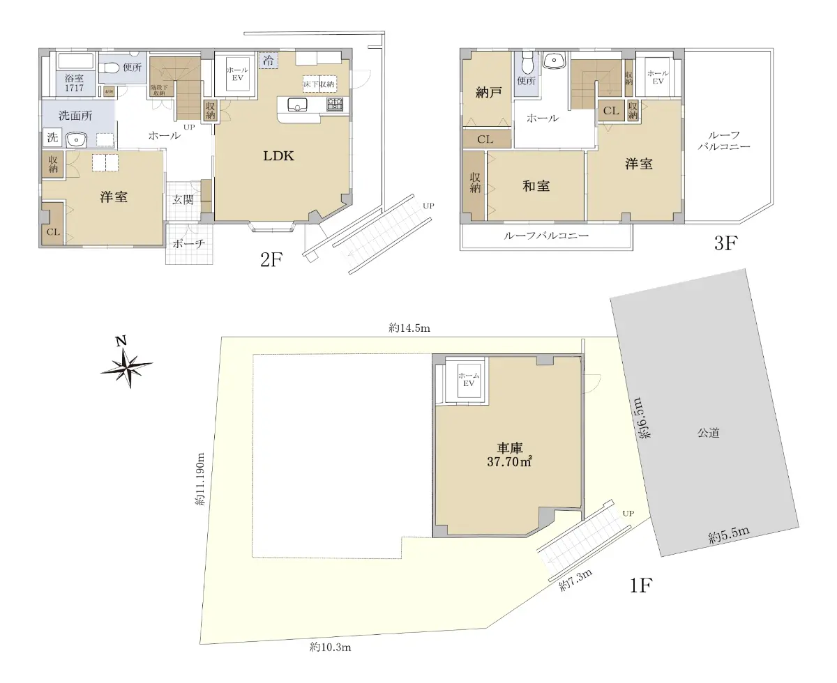 ※建物面積に車庫部分:37.70uを含む