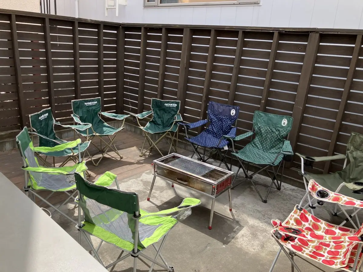 テラスでは、約10脚ほどの椅子を並べてBBQが可能です。