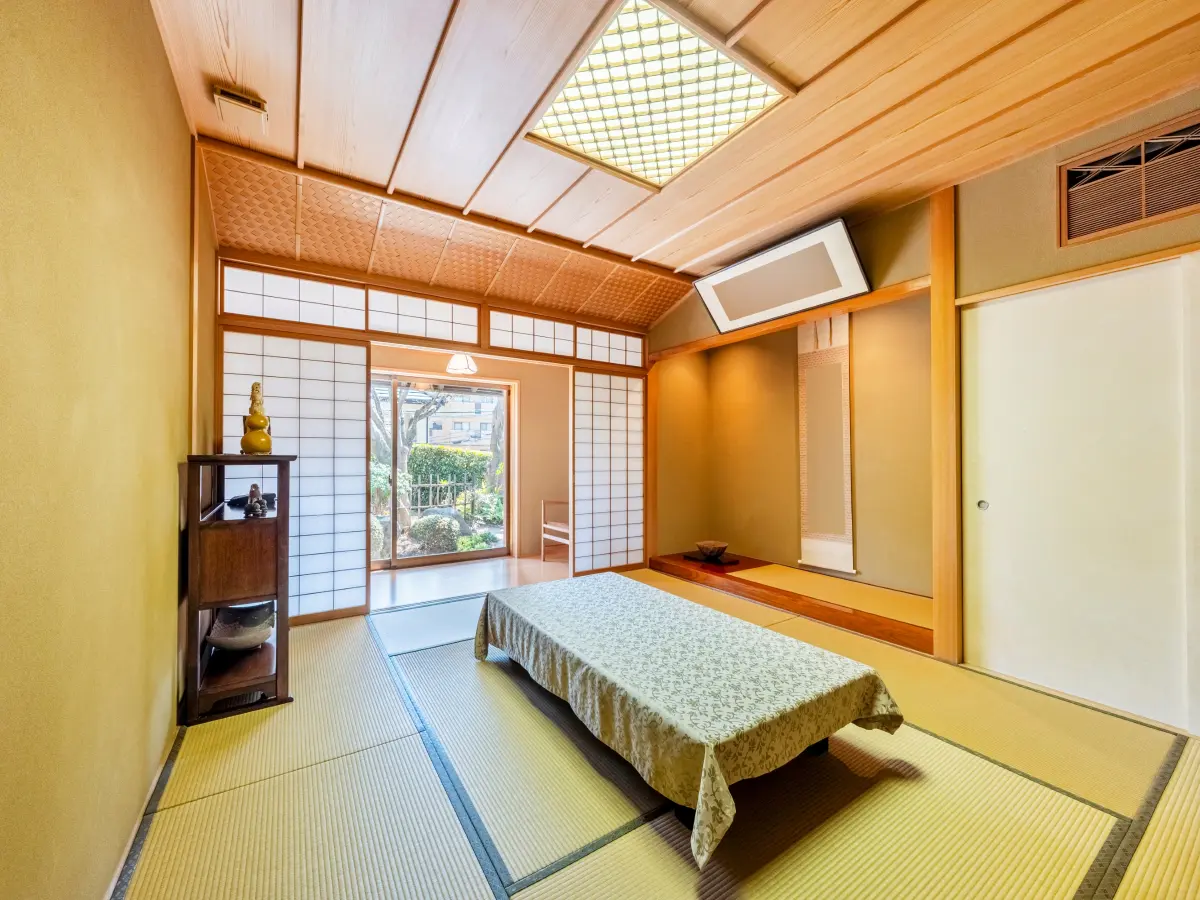 室内は、格式ある料亭や旅館のような空間となっております。平家は約21年を経過した現在、手入れも行き届いており、より深みを増した印象にございます。