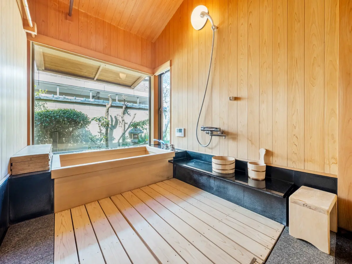 ■ 御影石や桧を贅沢に用いた浴室