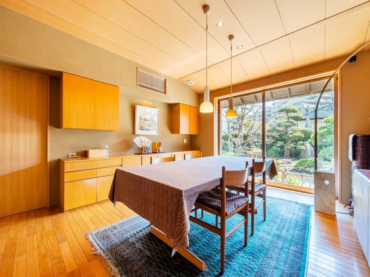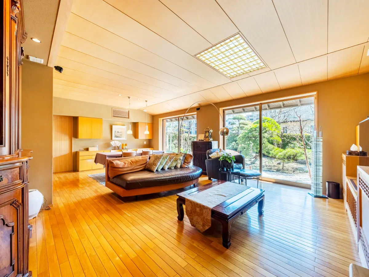 客間としての和室や約30.5帖のLDK、御影石や桧を用いた浴室や洗面脱衣所、四季を感じる庭園を一望するリビングなどが、本宅の魅力でございます。