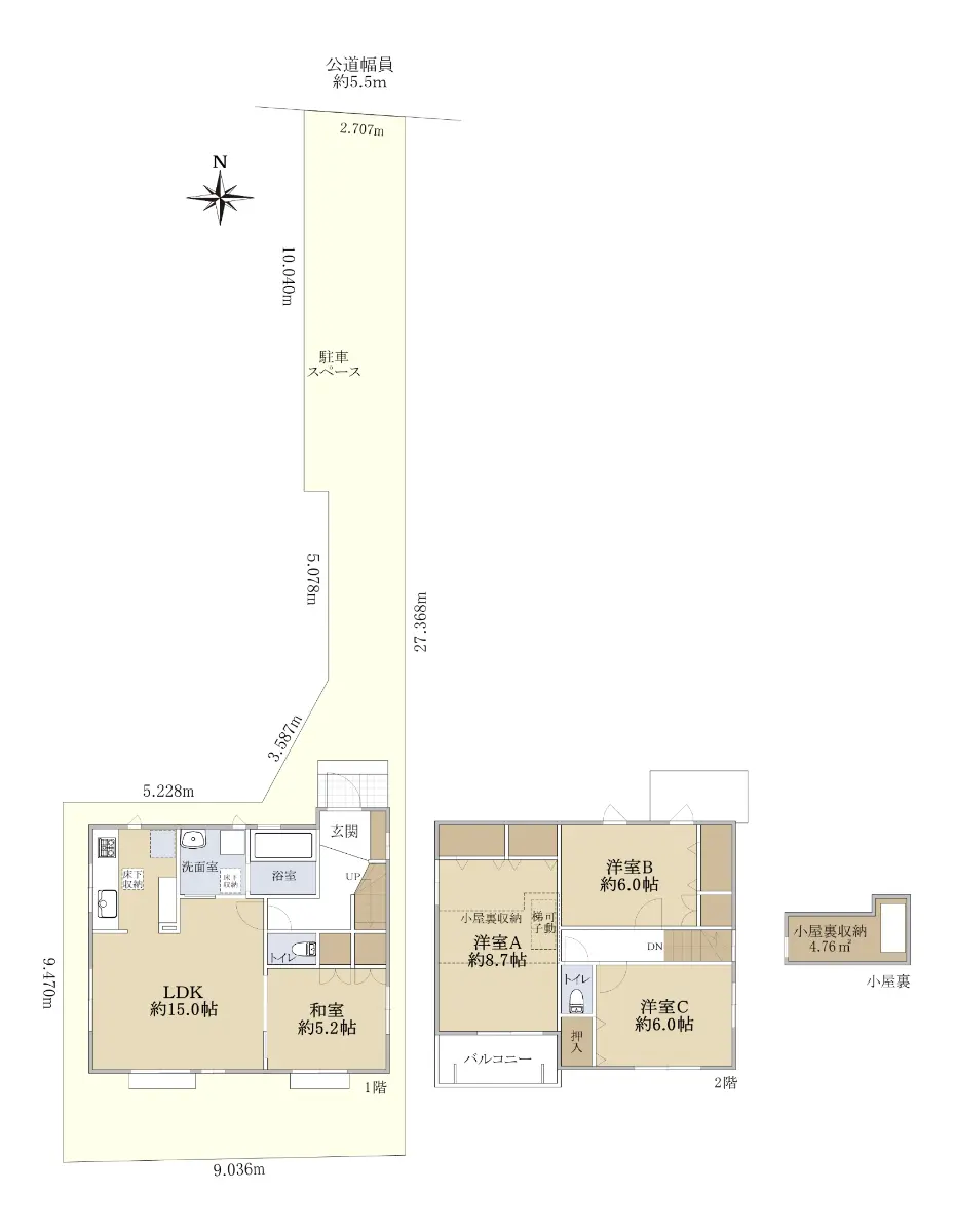 | 接道状況 | 一方道路・北5.5m(公道)接面2.7m |