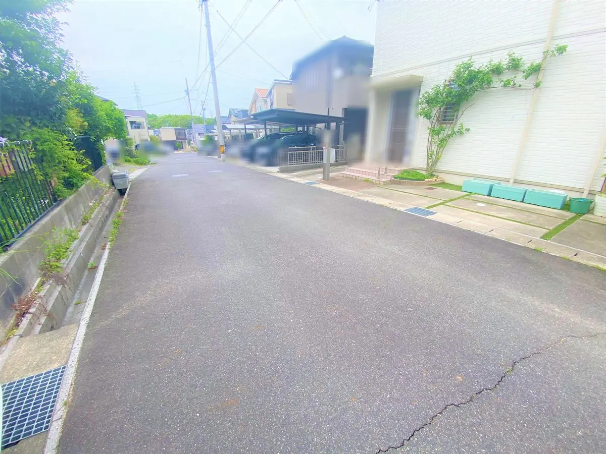 間口はゆとりのある11m超、前面道路も幅員約6mと広く、お車の出し入れもスムーズで安心です。