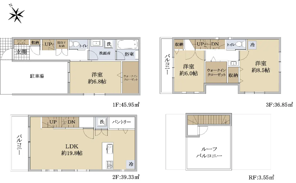 建物面積125.68m2(約38.01坪)・間取り3LDK・2021年10月築