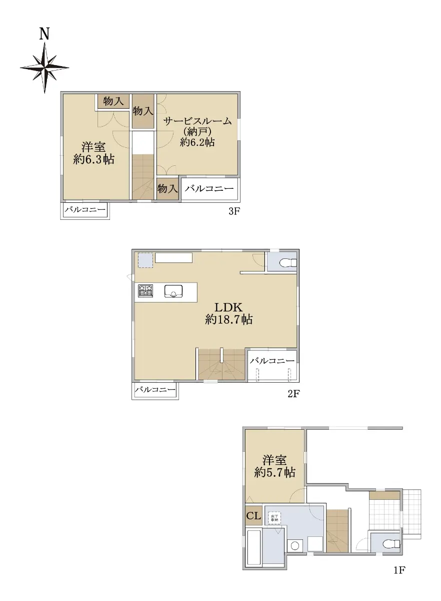 | 間取り | 2SLDK ※Sはサービスルーム(納戸) |