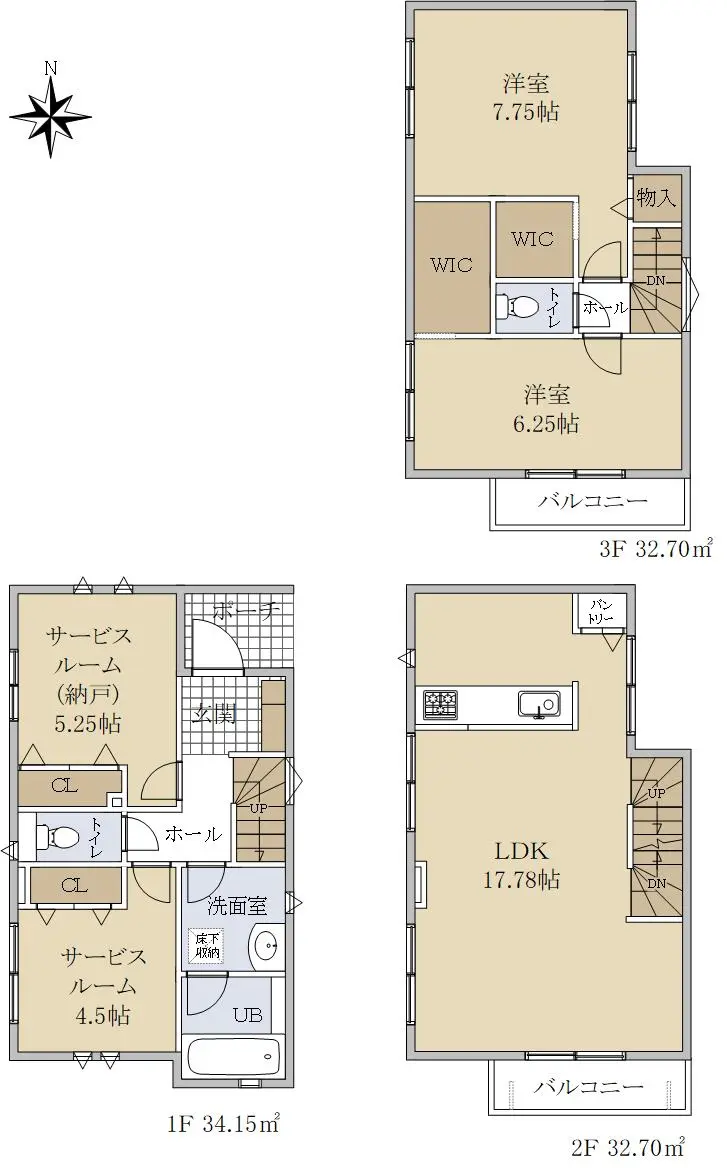 | 間取り | 2SLDK ※Sはサービスルーム(納戸) |