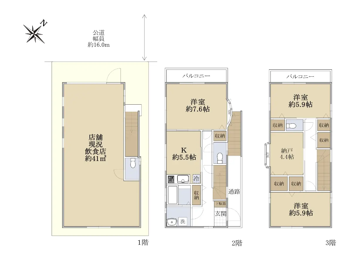 | 接道状況 | 一方道路・北西16m(公道)接面6.3m |