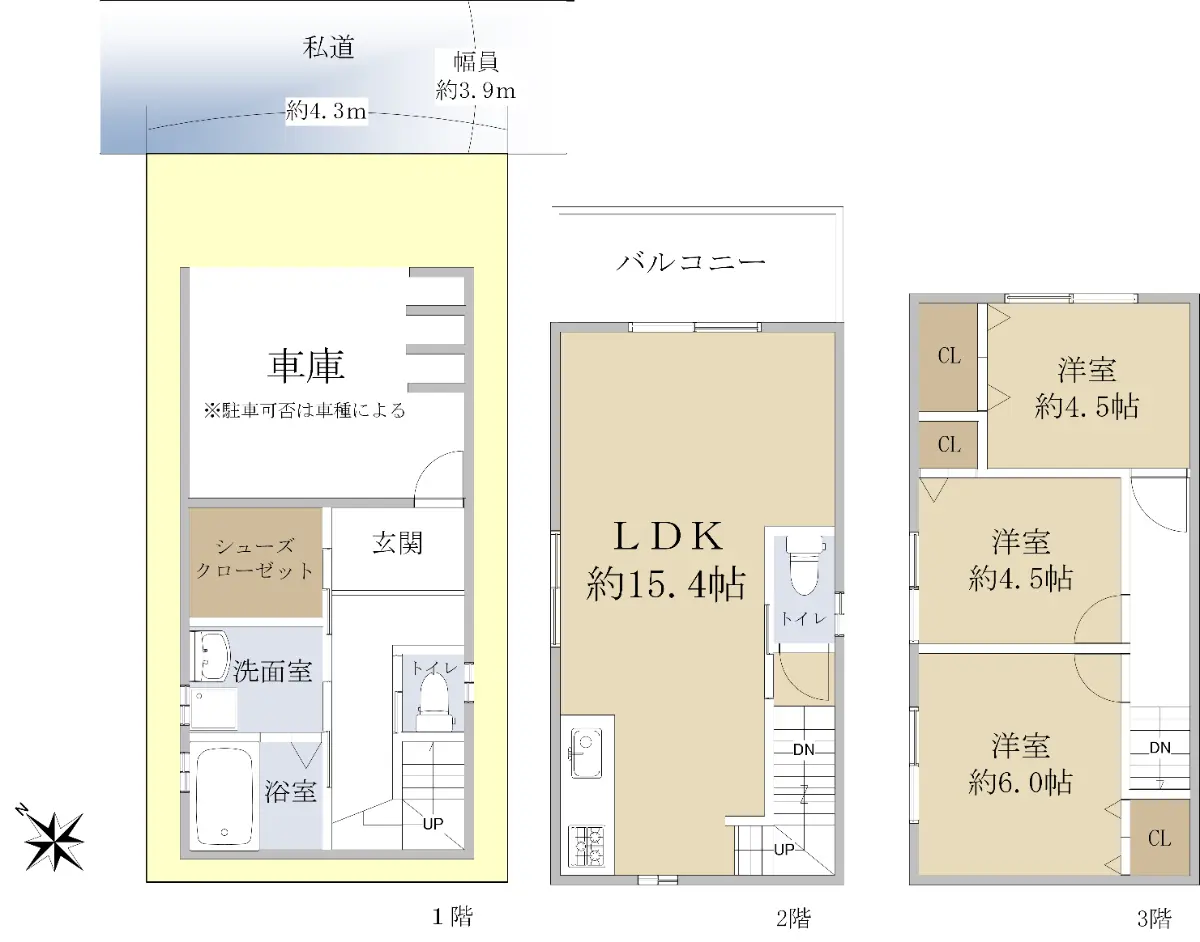 | 接道状況 | 一方道路・北東3.9m(私道)接面4.3m |