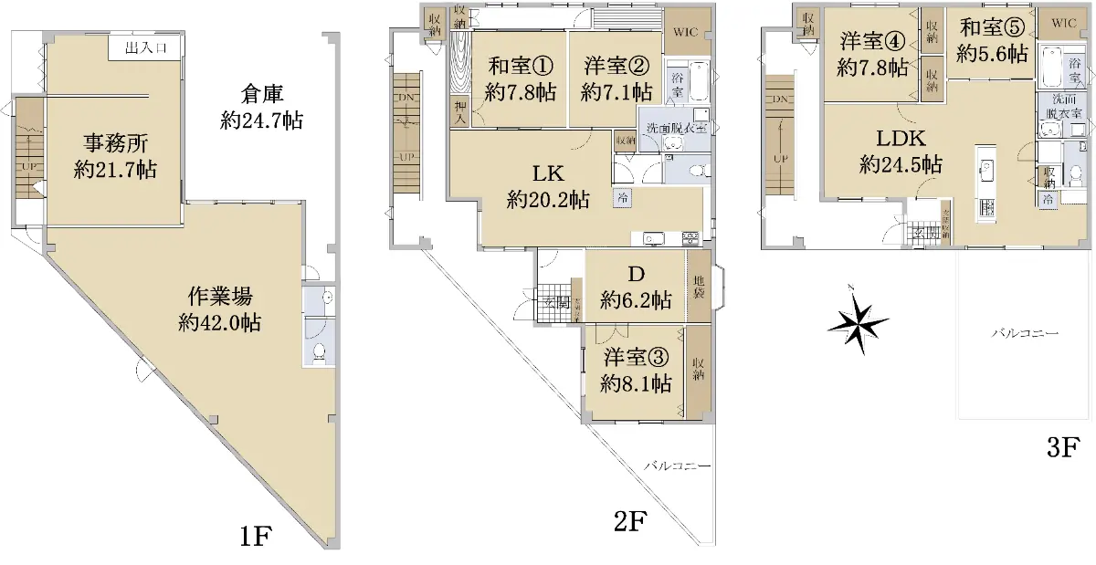 1階:事務所+倉庫+作業場