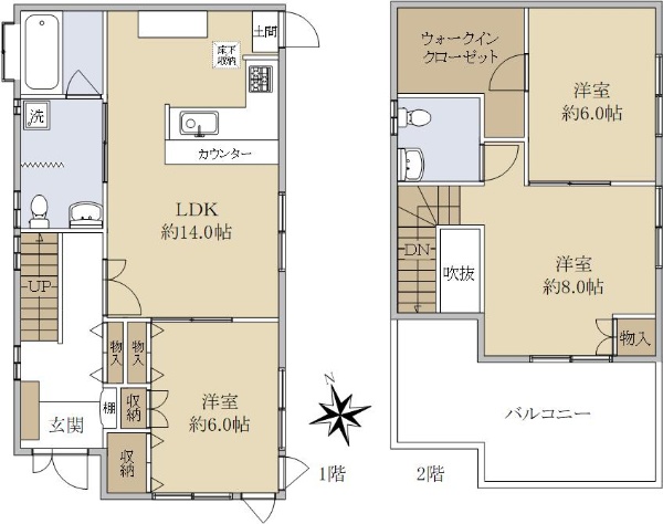 陽当り良好な6SDKの間取り