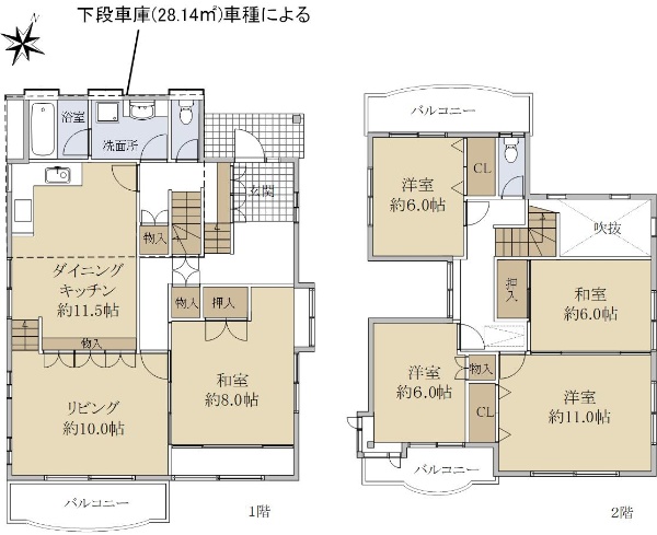 ・角地  ・土地面積約129.9坪  ・車庫4台駐車可(車種による)