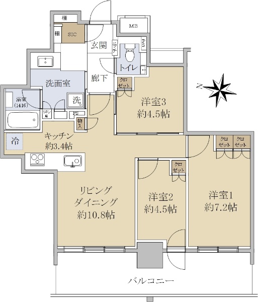 バルコニー方向が南向き(南西・南東含む)